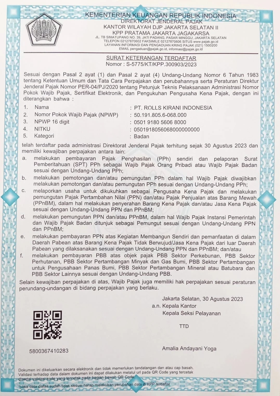 Keberadaan PT.Rolls Kirani Indonesia seperti ini tidak lepas dari sejarah berdirinya perusuhaan.menjelang tahun 2018 untuk pertama kalinya berdiri dengan nama Apparel ROLLS PRINTING berkedudukan di lenteng agung jakarta selatan di bidang pembuatan jersey.pada tahun 2018 ROLLS PRINTING meningkatkan pelayanan jasa pembuatan jersey untuk memenuhi kepuasaan pelanggan.